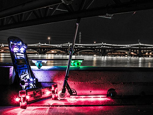 - Feature : BLAZING SPECIAL: Buy any 2 sets for only $35, plus get FREE SHIPPING! Includes all colors & combinations. Discount applied at checkout. / Instantly customize your ride! No bulky battery pack or wires. / Place lights under trucks to do tricks, or cruise in style and safety. / Self-adhesive. Each light includes small, long-lasting, easily replaceable lithium batteries. Manual on/off activation. Contains set of 4 lights of the same color. / Works with ALL skateboards, longboards, and scooters. Makes a perfect gift!