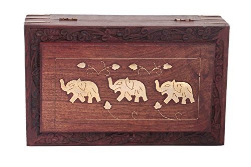 Valentine Day Special Present, Wooden Triple Elephant Jewelry Box, Carving & Inlay Box, Multipurpose Keepsake Storage Box, Earring Box, Jewelry Organizer Box, Brown Color Size 8 X 5 Inch