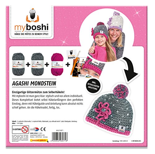 Noris Spiele 606318071 Hakel Set, myboshi Agashi MondsteIn Mit Glitzerwolle