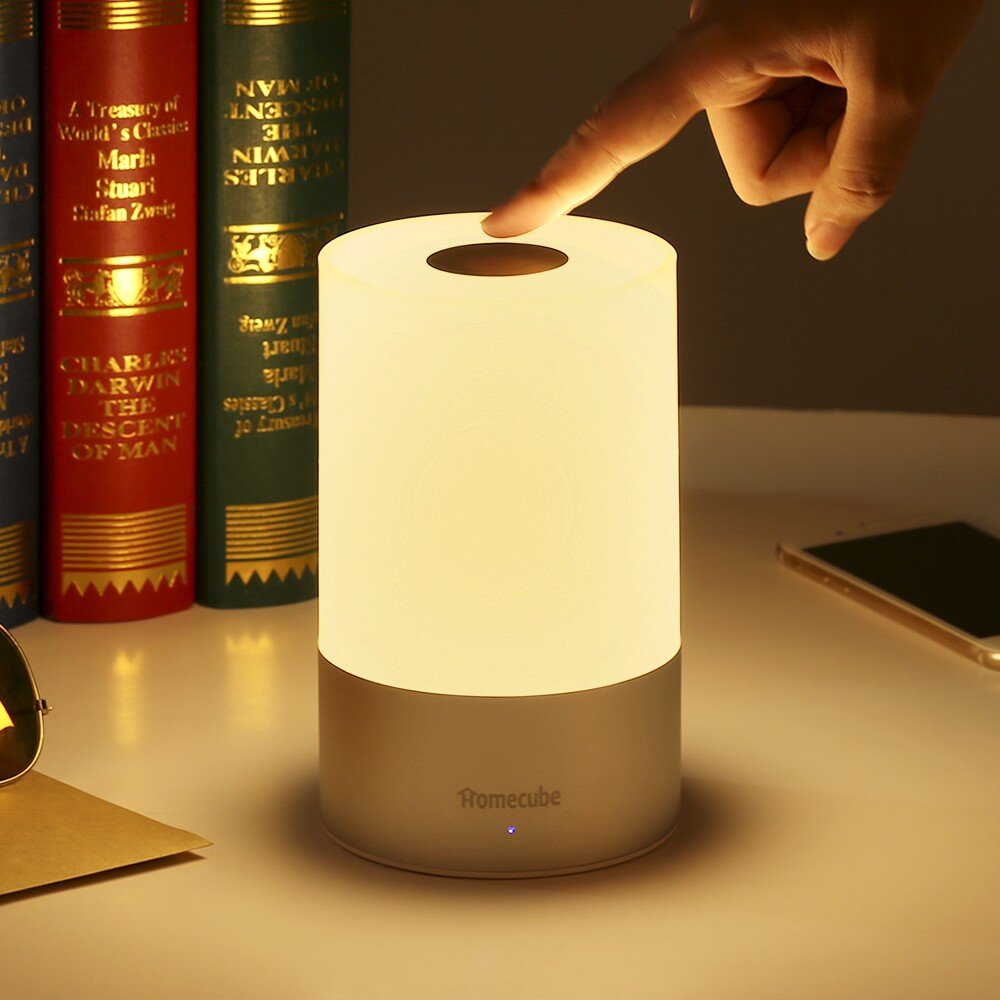 When you touch the panel at the top of the lamp for 1 second, the white light is on.