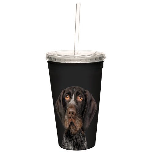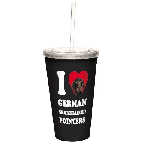 Tree-Free Greetings CC35058 I Heart German Shorthaired Pointers Artful Traveler Double-Walled Cool Cup with Reusable Straw, 16-Ounce, Brown Close-Up