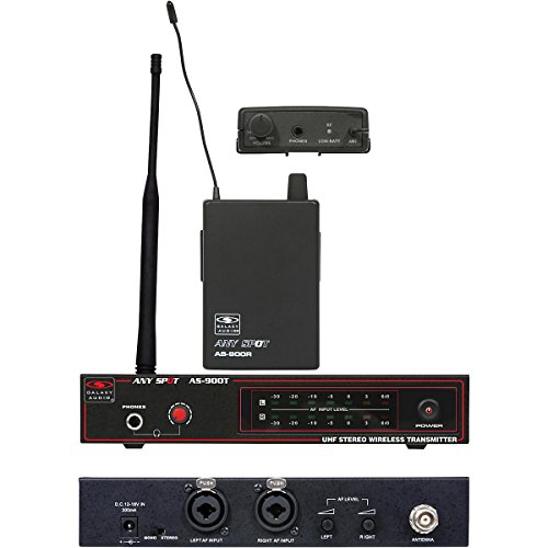 Studio : Galaxy Publisher : Galaxy Binding : Electronics Product Description The AS-900 is a great entry-level Wireless Personal Monitor. This system features an 80mW receiver output. The receiver also contains an RF and low battery indicator. The transmitter has L/R level display, stereo XLR/¼" inputs and an headphone output with volume control. The AS-900 is a fixed frequency unit. 0
