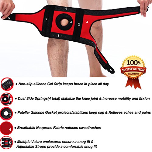 -. Feature : ✅KNEE STABILIZER&NON-SLIP - Triple hooks and loops straps to keep the knee support perfect in place. Triple strap closure system keeps the knee support in place even during high-intensity workouts. Top and bottom of knee brace to ensure it stays firmly in place while you move plus quadruple side stabilizers, two on either side of the knee for maximum lateral support / ✅BILATERAL SP.R.ING SUPPORT - The knee brace with the two support sP.R.Ings on both sides can ease the knee bending pressure effectively. Maximum support & more natural movement. / ✅WORKOUT BRACES - You can wear our knee support during exercising, Like walking, hiking, running and other sports, which will help recovery from knee surgery, arthritis, Meniscus Tear, ACL, MCL, LCL, Tendonitis / ✅ONE SIZE FITS MOST - Length:73cm; Width:19cm(Fit 35-65cm knee size), which can fit both men and women most sizes for many kinds of outdoor / indoor sports activities. Fully adjustable makes it close tighter and gives better compression for the knee / ✅GUARANTEE - Dear customer, For any reason, if you are not satisfied with our quality, you are covered for the first 90 days with Our Satisfaction Guaranteed Policy, the team would offer you a replacement or 100% money back. Happy Shopping in my shop