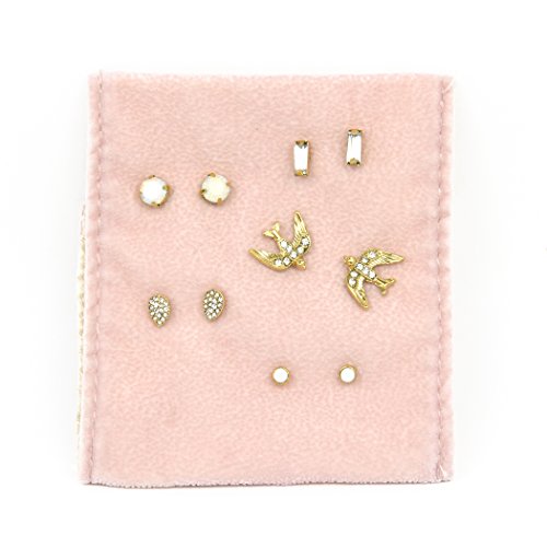 No jewelry box is complete without these stunning, eye-catching gift sets of 5 post earrings sure to make you feel beautiful inside and out. Our dress-up sets offer a variety of looks to suit your unique style, mood and moment. Since these little gems can easily be misplaced, we've packed that on a lush velvet pouch that's just perfect for gifting & safekeeping!Feature