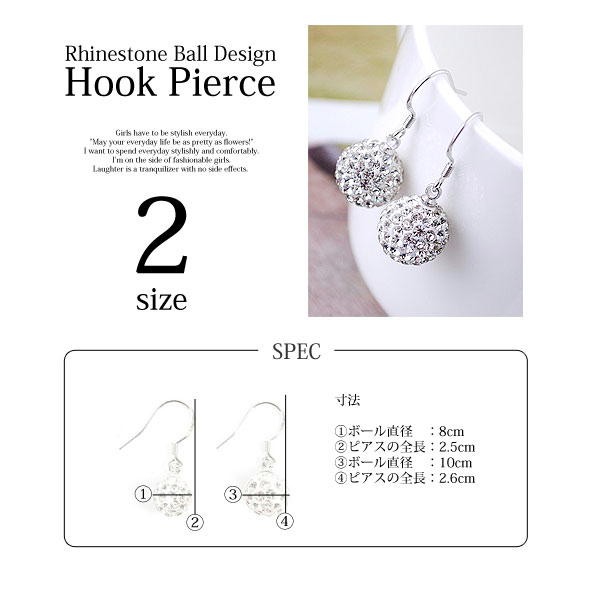 <<スーパーSUMMER SALE>>★サイズが選べるライトストーンボールピアス!★ゴージャス感があるデザインのピアスです。エレガントさが出る素敵なアイテムです。サイズが選べます!パーティーや結婚式はもちろん、普段使いもできるおすすめアイテムです。■商品詳細■(8mm)ボール直径:約8mmピアス全長:約2.5cm(10mm)ボール直径:約10mmピアス全長:約2.6cm※注意事項※商品画像はできる限り実物の色に近づけておりますが、モニター・パソコン等の画像解像度により実際の商品と多少色味が異なる場合がございます。サイズは平置きサイズとなりますので、測り方により誤差が出る場合がございます。予めご了承くださいますようお願いいたします。