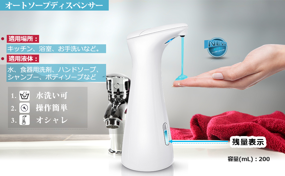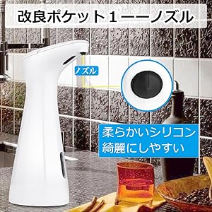 ★【柔らかいノズル】長時間使用した後、ノズルでソープの塊はかさばって、硬いノズルは綺麗にしにくく、本製品のノズルは柔らかいので、軽く拭い取るだけで綺麗にします。【妨害防止】センサーは妨害防止機能付き、強い光でも構わなくて、手軽にかざせばいいです。