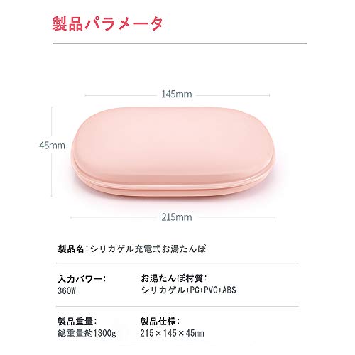 - 360W 入力効率、温度が上がるスピードが速い、通電8-15分間、温度は70℃に至る持続保温は2時間(手を暖める)から10時間ぐらいまで(布団を暖める)、具体的な保温時間は気温及ぶ使用方式によって定まる