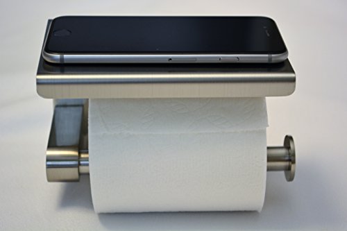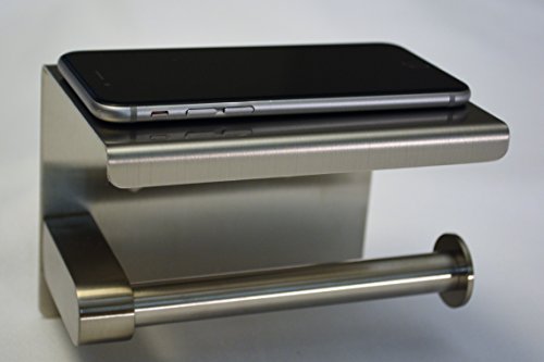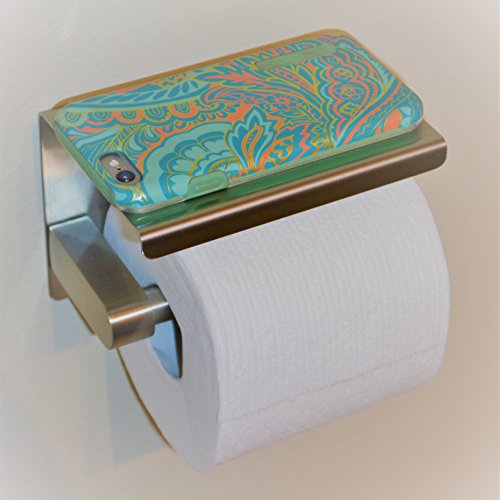 Bathroom Tissue Paper Holder with a Mobile Phone Storage Shelf by VLuxe Products. Strong Toilet Paper Holder Stainless Steel with Cell Phone Rack, RustProof and Highest Quality!
