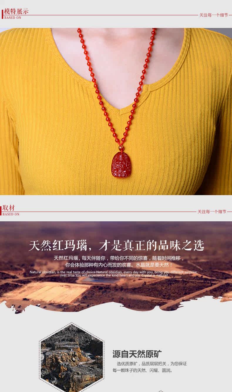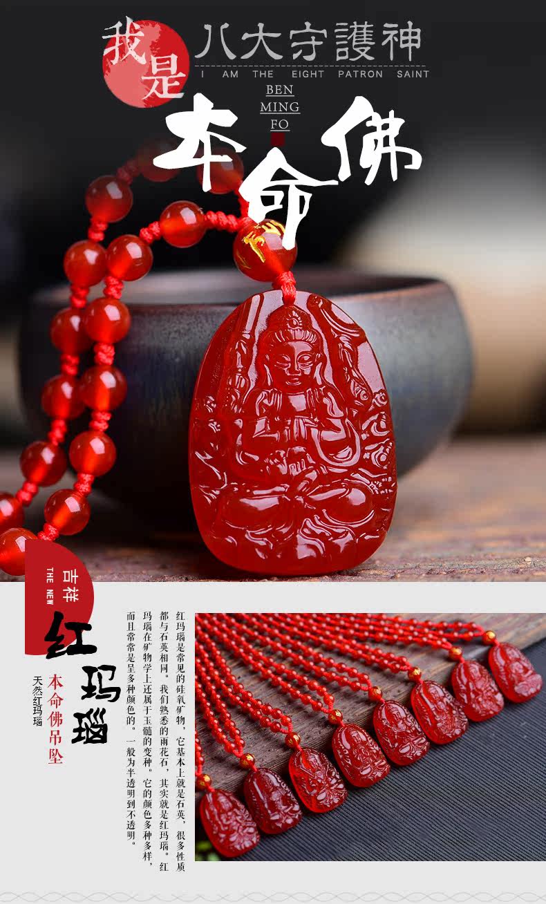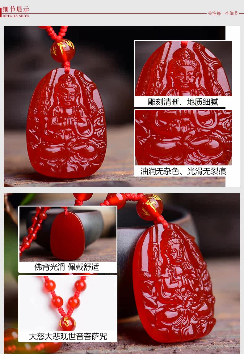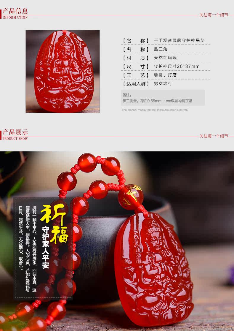 开光天然红玛瑙千手观音菩萨本命佛吊坠 生肖属鼠守护神男女项链