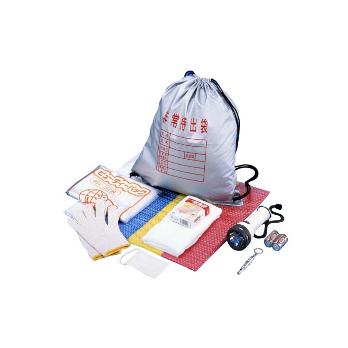 세트 내용:비상 반출대,할로겐 방수 라이트(전지부)고, 알루미늄제 whistle,레져 씨트,타올,구급반 창기름,쓰레기봉지(45L10매)고, 목장갑,불직포마스크