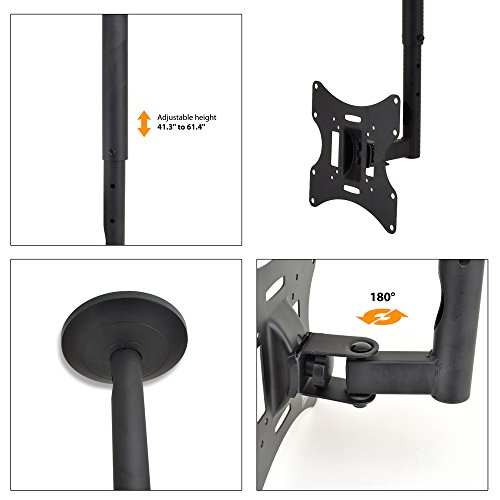 -. Feature : Fits Virtually Any 23-Inch to 42-Inch Television - Works with HDTV, LCD, LED, Plasmas, etc. / Universal VESA Mount Standard Compatibility - Bracket Design Mounts to Ceilings / Ceiling to TV Height: 19" to 33" inches - Tilt Adjustable: from -20 to +20 Degrees / Swivel Adjustable: 180 Degrees - Provides Safe, Durable & Reliable TV Mounting / Load Capacity: 66 lbs. (30 kg.) - Includes All Necessary Mounting Hardware and Brackets