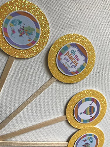 8 Oh The Places You'll Go Cupcake Toppers Favors Girl Boy Birthday Party Favor Tags Bags Dr Seuss