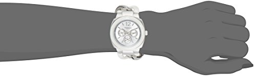 -. Feature : Multifunction features include day, date, and GMT (24 hour) sub dials / Silver-tone and white resin chain link watch / Pillow-cut style case / Precise quartz movement / Not water resistant
