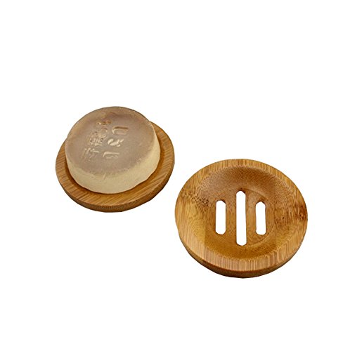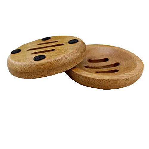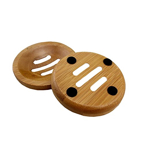 FINGER LOVE Round Shape Bamboo Soap Dish Soap Holder Bath Accessories (2pcs)