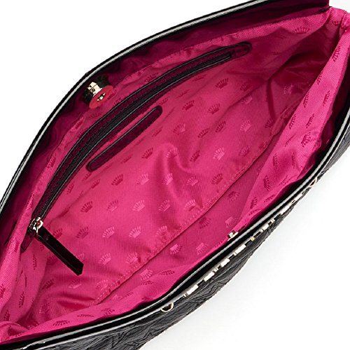 Step out for any occasion organized and in style with this Juicy Couture star clutch. In black. PRODUCT FEATURES Quilted star design Patent top Gold-tone hardware PRODUCT DETAILS 7 1/2''H x 12 1/2''W x 3 1/4''D Wrist strap Magnetic snap closure Interior: zip pocket Faux leather