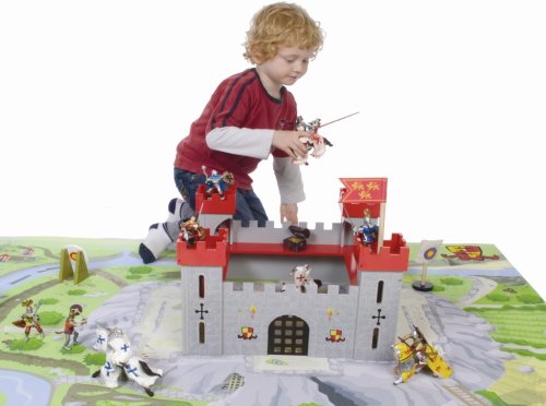 -. Feature : Painted wood first castle / Flag and running board / Sliding portcullis for access / Four corner towers / Mix and match with Papo figures, sold separately