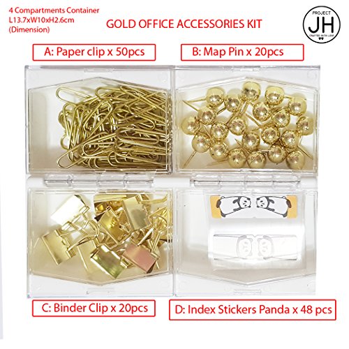 - Gold Desk Accessories kit set on the go - consist of 50x paper clips, 20x map pin, 12x binder clips & 48pcs post-it label.