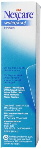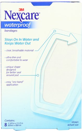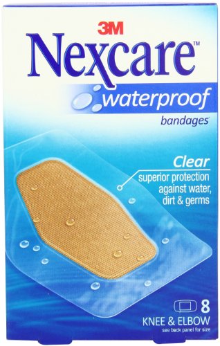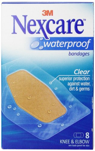 -. Binding : Health and Beauty -. Brand : Nexcare -. Feature : Made of heavy duty, ultra tough, durable fabric that conforms easily to the body -.Unique diamond-shaped bandage is designed for better seal around the pad -.Latex free bandage -.Performs well with heavy-duty activities -. Label : 3M Corp -. Manufacturer : 3M Corp -. MPN : LYSB01EHUKAJO-SPRTSEQIP -. NumberOfItems : 24 -. PackageQuantity : 1 -. PartNumber : LYSB01EHUKAJO-SPRTSEQIP -. ProductGroup : Health and Beauty -. ProductTypeName : HEALTH_PERSONAL_CARE -. Publisher : 3M Corp -. ReleaseDate : 2016-04-19 -. Studio : 3M Corp -. Title : Nexcare Waterproof Clear Bandage, Knee and Elbow, 8-Count Packages (Pack of 24)
