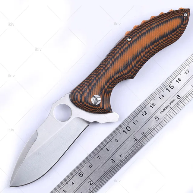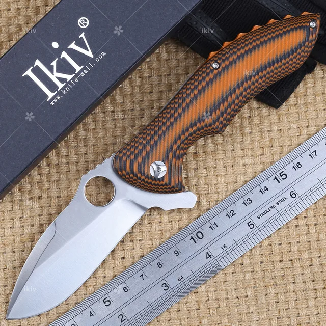 [해외] IKIV 접는 칼 9CR18MOV 블레이드 G10 핸들 포켓 나이프 볼 베어링 사냥 전술 전투 플리퍼 캠핑 나이프