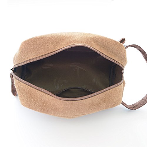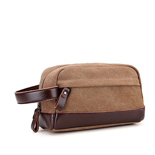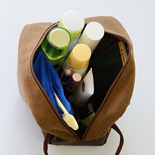 - High Quality Toiletry Organizer Bag, made of 16oz canvas, Eco-friendly. And decorated with high quality leather. A Handle For Easy Carrying. Thick Large Zipper makes it easy to zip and unzip