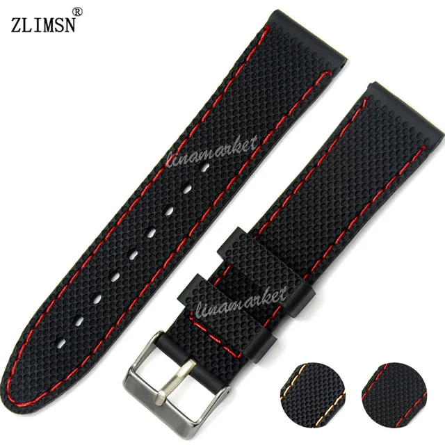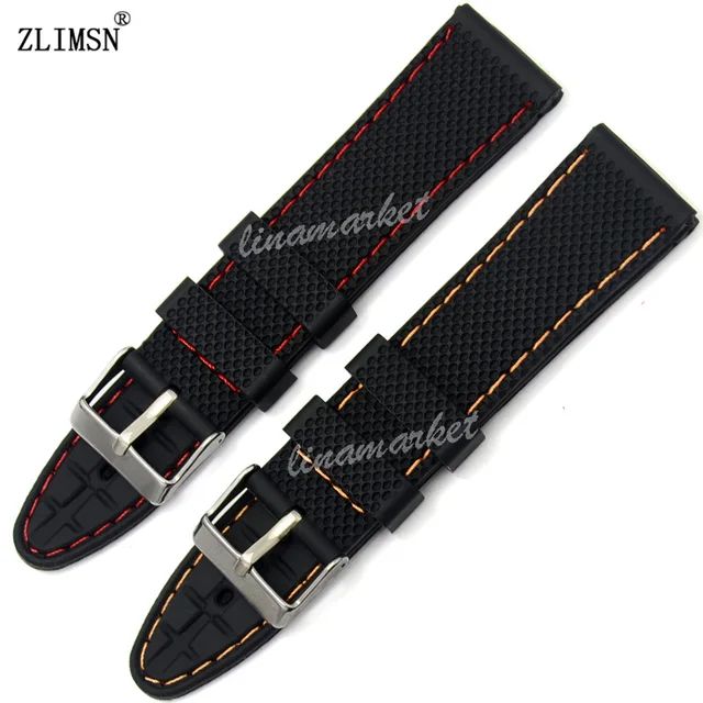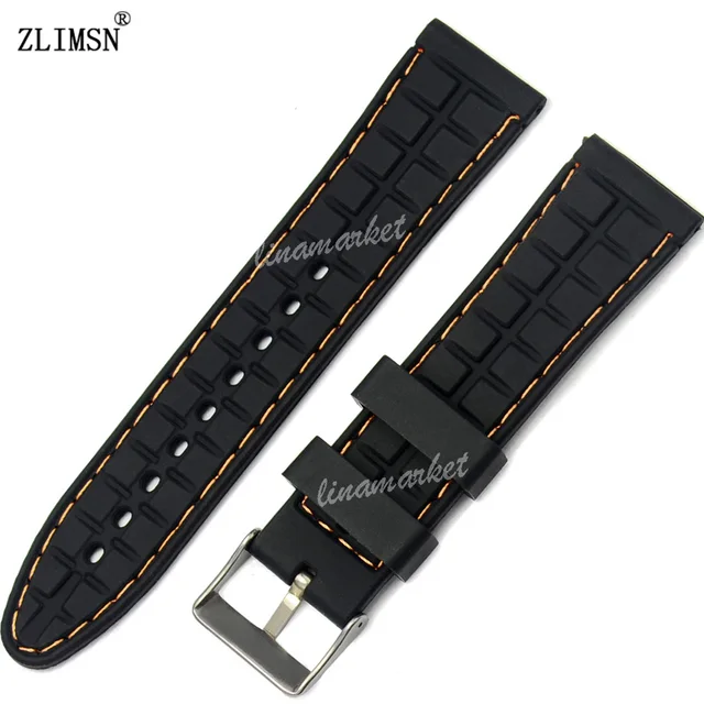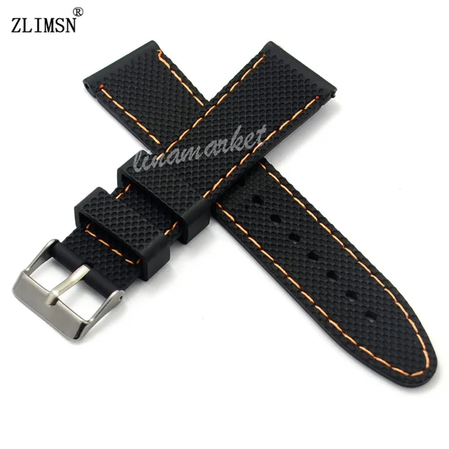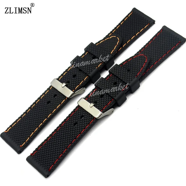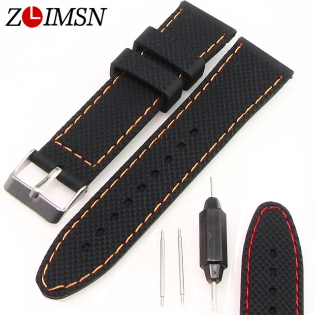 | [해외]Zlimsn 고무 시계 줄 orange 레드 스티치 블랙 실리콘 시계 밴드 스트랩 금속 버클 밴드 relojes 아저씨 2017 22 미리메터 24 미리메터 g9 |