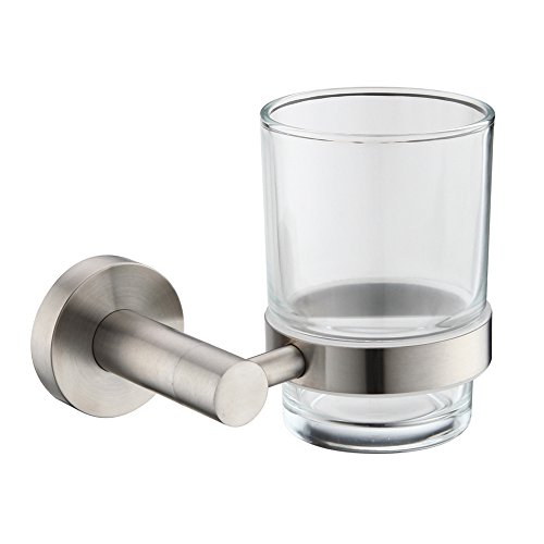 Mellewell Lavatory Single Glass Tumbler with SUS304 Stainless Steel Holder Wall Mounted, Brushed Finish, 05A10