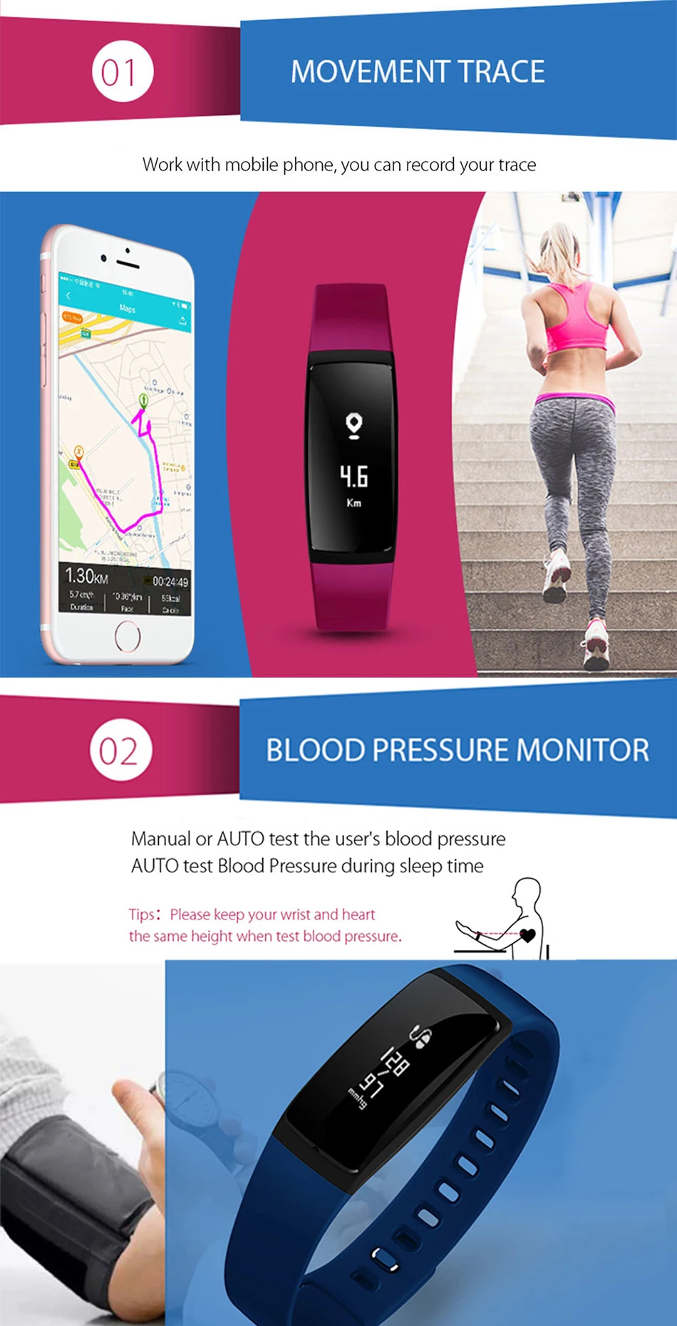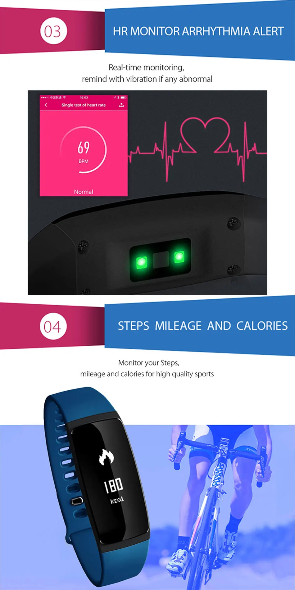 Health tracker: Heart rate monitor,Pedometer,Sedentary reminder,Sleep monitor