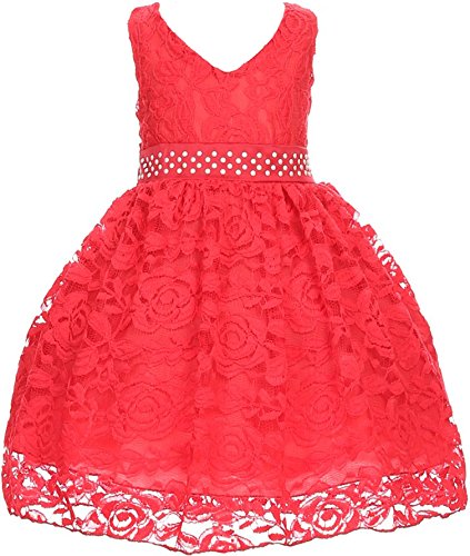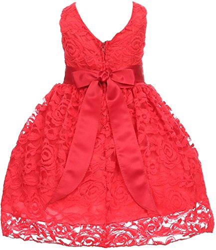 Flower Girl Dress V Neck Accented Spendax Lace for Baby & Infant Red 3T S30.38H
