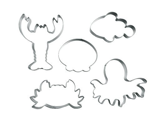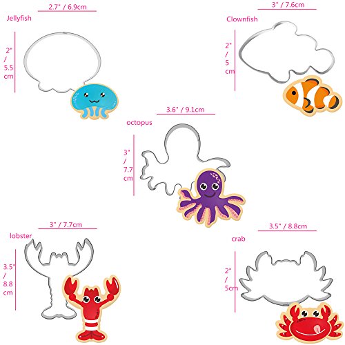Efivs Arts Set of 5 Ocean Series Cookie and Fondant Cutter Stainless Steel Biscuit Mini Mousse cake Molds(Clownfish, Octopus, Lobster, Crab and Jellyfish)