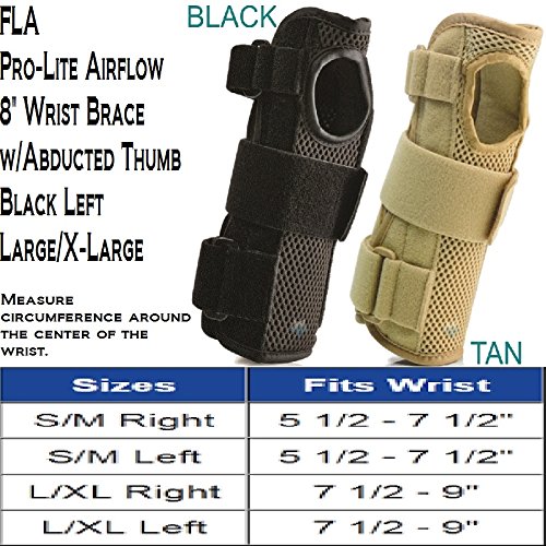 -. Title : Florida Orthopedics Prolite 8" Airflow Wrist Brace with Abducted Thumb, Black, Left Large/X-Large