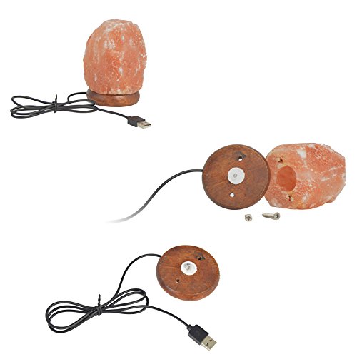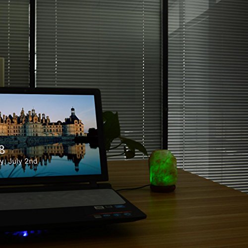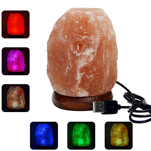 Natural Himalayan Salt Lamp - Pink Hand Carved Rock Salt Lamps with Color Changing LED Light , USB plug and Wood Base - Mini Air Purifier for Office Home