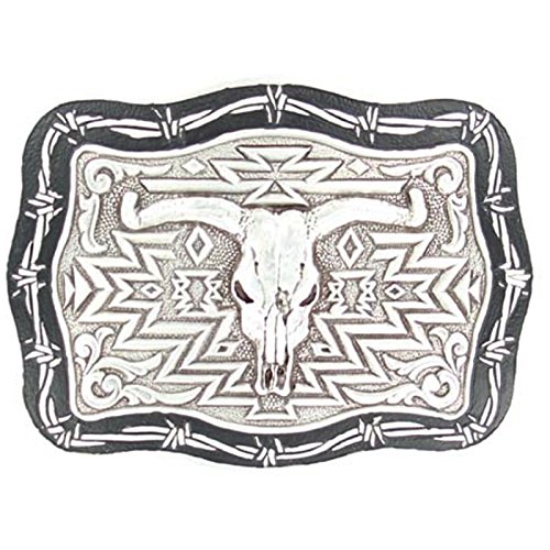 M F Western Products Womens MF and Black Skull Head Buckle Silver