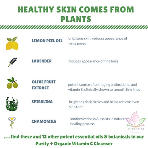Purity + Organic Vitamin C Face Wash - Anti Aging Facial Cleanser | Green Tea | Aloe Vera | Lemon Peel Oil | Sulfate Free | Paraben Free | 18 Essential Oils &...