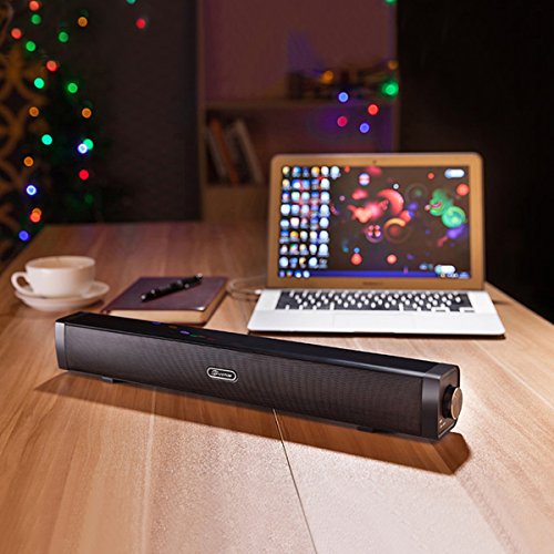 【Knopfverstellung】Der USB Lautsprecher mit separatem Schalter und Lautstarkeregler, was es Ihnen ermoglicht, einfach den Lautsprecher getrennt zu steuern. Dank der Verwendung von Stereo + invertierter Bass-Erweiterungs-Technologie wird die Verzerrung des Klangs stark reduziert, was Ihnen ein 3D-Stereo-Surround-Sound-Genuss anbieten kann.
