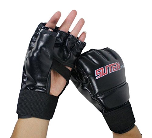 -. Binding : Sports -. Feature : Wrist strap w/ tri-sect closure for extra support & protection during training / Anatomical thumb padding to provide increased protection without decreasing mobility / Contoured fit puts the hand into a natural fist position maximizing your punching techniques / Closed cell Durafoam curved padding. / One size fits most, Adjustable -. IsAutographed : 0 -. IsMemorabilia : 0 -. Label : SUTEN -. Manufacturer : SUTEN -. ProductGroup : Sports -. ProductTypeName : SPORTING_GOODS -. Publisher : SUTEN -. Studio : SUTEN -. Title : SUTEN MMA Muay Thai Training Punching Bag Half Mitts Sparring Boxing Gym Gloves