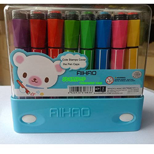 -. Title : Lasten Premium 24 Colors Stamper Color Pens, Washable Watercolor Pen Set with Cute Stamps, Set of 24, Assorted Colors, Perfect for Painting Coloring