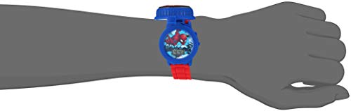 Item model number: SPD4498 Batteries: 1 Nonstandard Battery batteries required. (included) Date first listed on Amazon: December 14, 2018 Brand, Seller, or Collection Name:Marvel Model number:SPD4498 Part Number:SPD4498 Item Shape:Round Dial window material type:Plastic Display Type:Digital Clasp:Buckle Case material:Plastic Case diameter:37 millimeters Case Thickness:25 millimeters Band Material:Plastic Band length:Children's Band width:18 millimeters Band Color:Red Dial color:Blue Bezel material:Plastic Bezel function:Stationary Item weight:1.44 Ounces Movement:Analog quartz