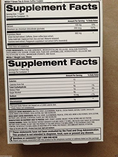 - Title : Mega-T Green Tea and Green Coffee Dietary Supplement 2 Free Weight Loss Chews Control Appetite 75 Caplets