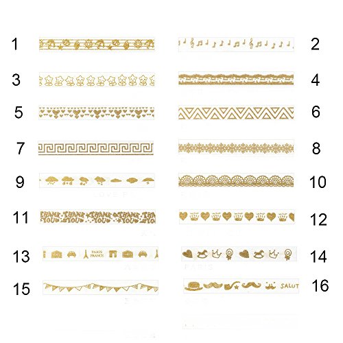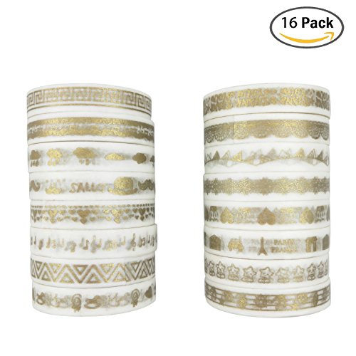 Washi Tape for Kids, Foil Gold Masking Tape for DIY Decoration, 16 Rolls by CSPRING