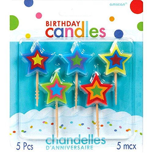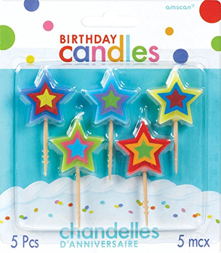 Party Time Molded Stars Birthday Toothpick Candles, Pack of 5, Multi , 2.75" Wax, Toothpick