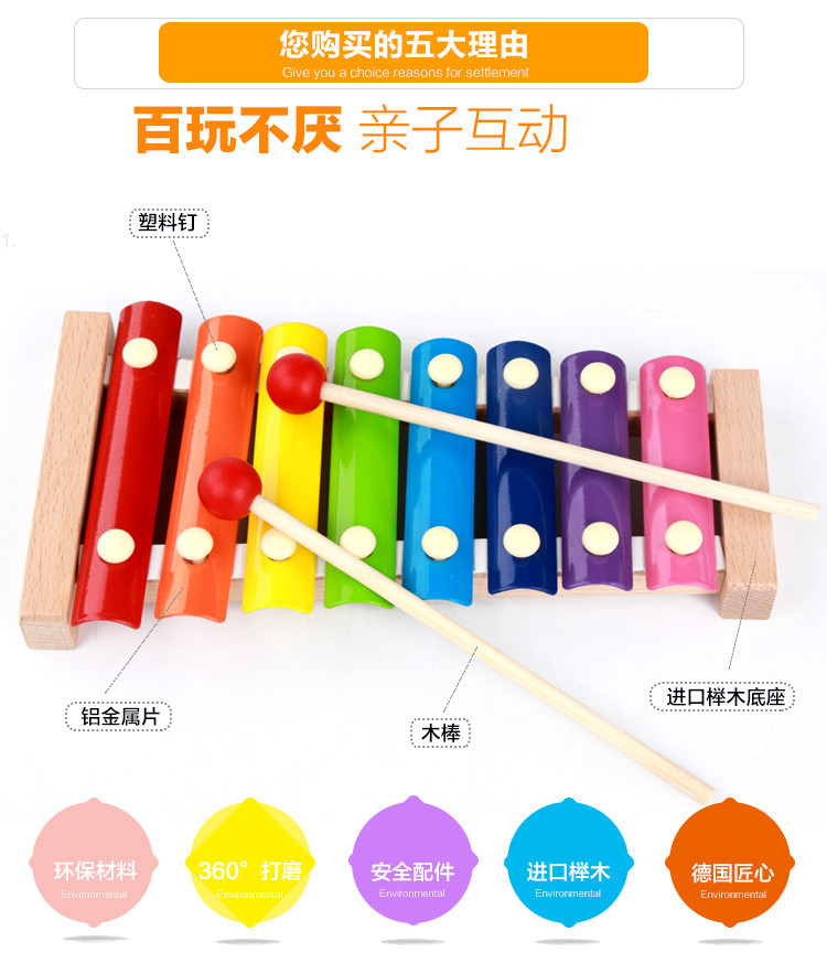 Cute chic celesta respectively with 8 different scales, with piano bar, knock hammer, playing musical pieces, dial will be issued crisp sweet music. Stimulate children's interest in music and creative talent, training the child's hand flexibility and improve hearing, is a good partner of the child.