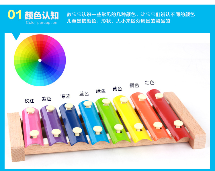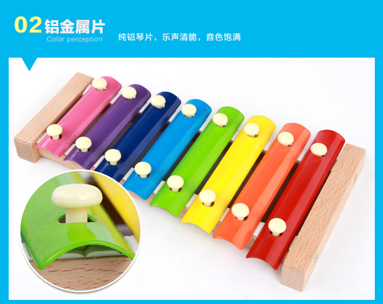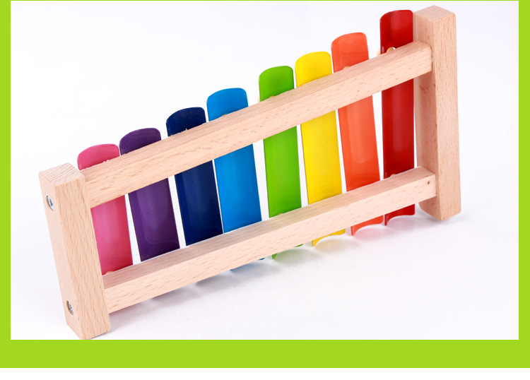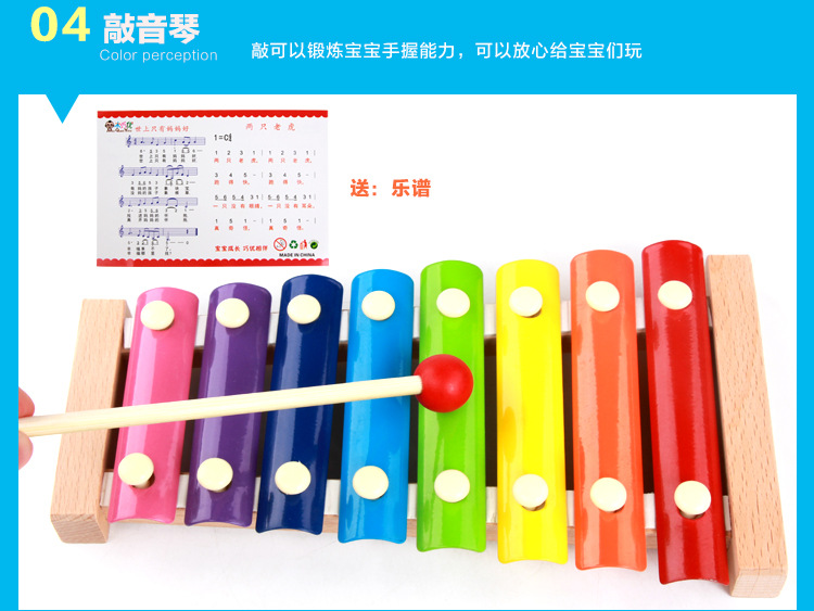 The color of the color music piano knock wood, 8 different colors of rainbow colored steel sheet and two ball rod type instrument.