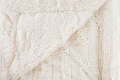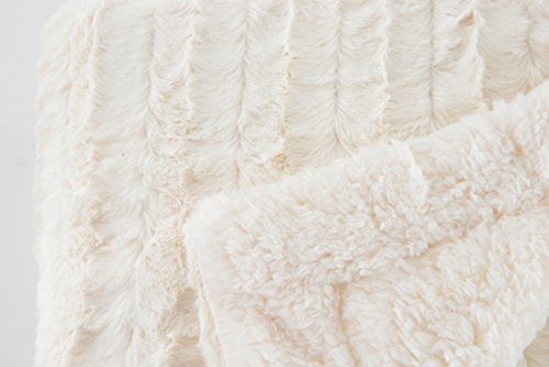 Longrich Embossed Faux-Fur Reversible Sherpa Throw Blanket, Ivory