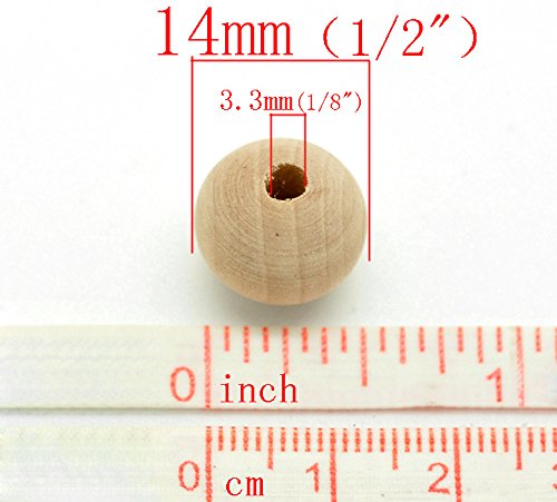 100 Round Unfinished Wood Beads Bulk 13 x 14mm Large Hole Diameter 3.3mm