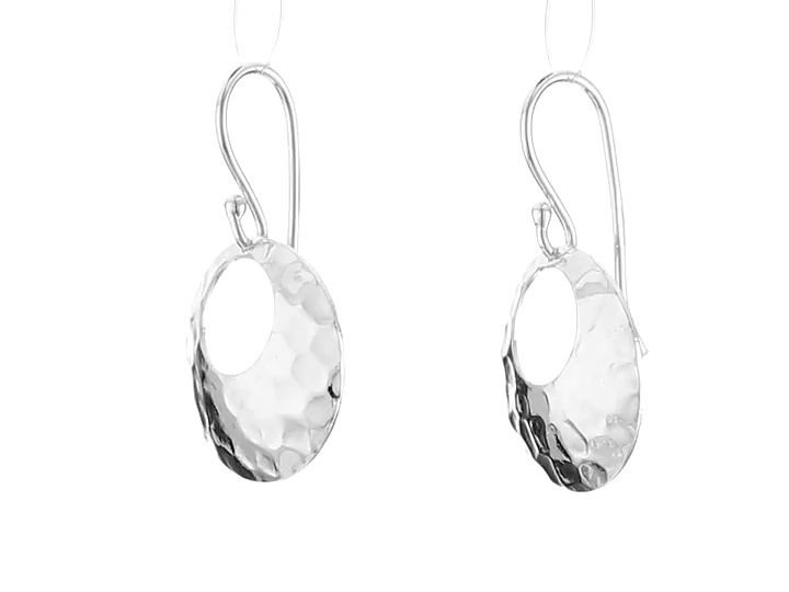 Sterling Silver Round Hammered 17mm Drop Earrings