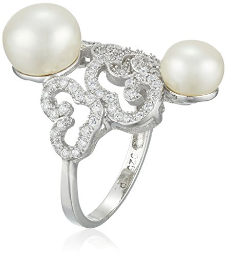 Bella Pearl Double Pearl Cubic Zirconia Ring, Size 7