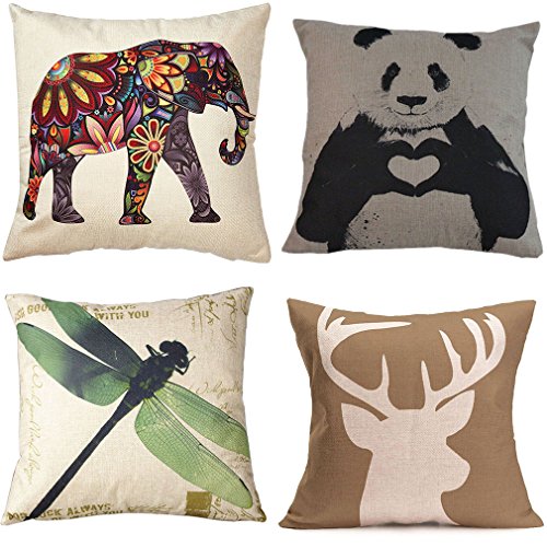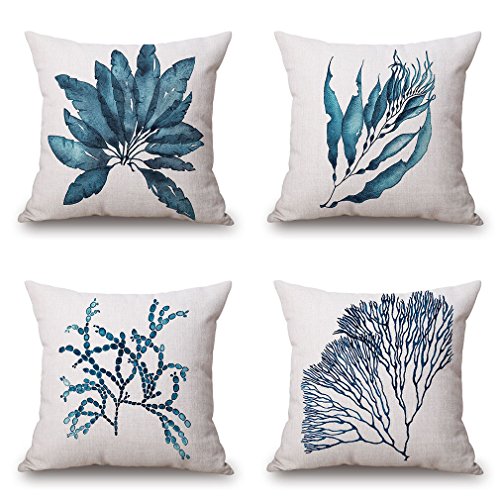 BPFY 4 Pack Home Decor Cotton Linen Nautical Style Sofa Throw Pillow Case Cushion Cover 18 x 18 Inch