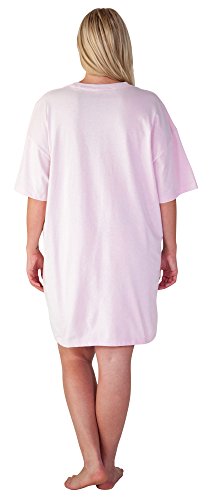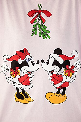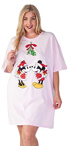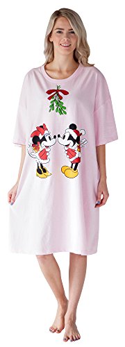 Mickey and Minnie Mouse under the mistletoe print on the front of these night shirts or coverups. One size fits most. Light pink, 100% cotton, crew neck and short sleeves. Machine was cold and tumble dry low.Feature
