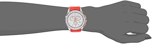 -. Feature : Chronograph features include 30 minute timer, 60 second, and day of the week sub dials / White, mother-of-pearl, outer dial with a white, etched, inner dial / Row of baguette crystals fill the bezel / Red, genuine leather, strap / Water resistant to 99 feet (30 M): withstands rain and splashes of water, but not showering or submersion