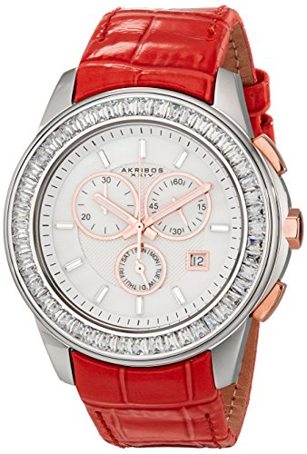 -. Title : Akribos XXIV Women's AK621RD Lady Diamond Swiss Quartz Crystal Mother-of-Pearl Silver-tone Stainless Steel Red Leather Strap Watch